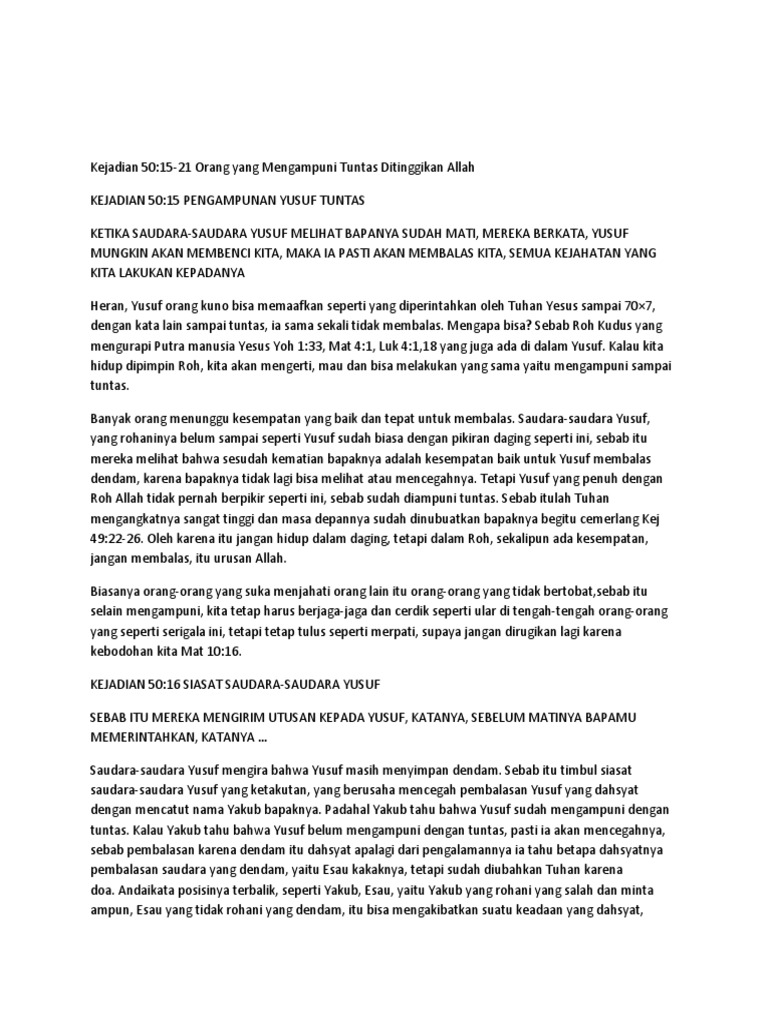 1 nats:karena itu seperti ada tertulils : Renungan rohani kristen tentang mengampuni sesama. Renungan air hidup dosa telah di tiadakan : Dia dilahirkan oleh seorang perawan: Dunia sudah terkontaminasi oleh dosa, karena itu selama seseorang hidup di dunia ini kecenderungan untuk berbuat dosa akan tetap ada sekalipun ia telah percaya kepada kristus.